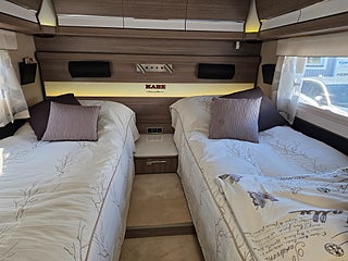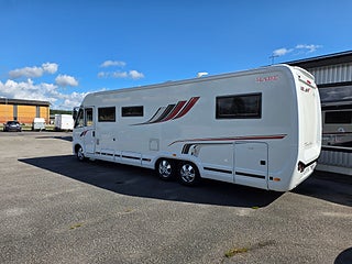 En KABE I 910 LB i ett underbart välvårdat skick som endast gått 2798 mil med automat från 2015. Pedantskött husbil som är KABES flaggskepp. Med bäddmöjlighet till 7-8 personer, Kan användas med fördel året runt