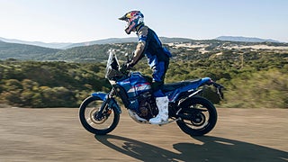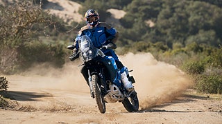 Ténéré 700 World Rally är redo för alla äventyr med sina dubbla bränsletankar och den berömda, vridmomentstarka CP2-motorn på 690 cc, förstklassig KYB-fjädring och ansluten TFT-mätare.