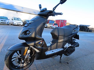 Den ha?r modellen a?r fo?r dig som vill sticka ut pa? ditt eget unika sa?tt. Dubbla konvexa strålkastare fram och LED-belysning fram. Radialmonterad skivbroms och wave-skiva fram ger grymma bromsegenskaper. Svartlackerade fa?lgar. USB-uttag fo?r laddning av t.ex. mobilen, du fa?r dessutom smartphoneha?llare. Fotplattor i aluminium. 13” hjul, styrvikter i rostfritt sta?l och sportljudda?mpare. Den perfekt positionerade digitala instrumentpanelen presenterar all information du beho?ver under ko?rningen. Sportbackspeglar.