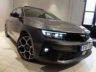 Fullmatad Opel Astra med bl a Nappaläder Jet Black inkl AGR certifierade sportstolar fram, ventilerade, elstol förare med minne samt värmesitsar bak. Ultimate paketet består bl a av öppningsbart panoramasoltak, Head Up display, 18" aluminiumfälgar, IntelliLux LED Matrix strålkastare, Navigation