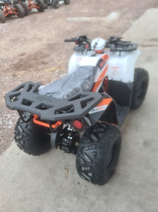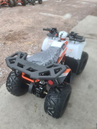 Fyrhjuling rek från 6 år som är en modern mini-kopia av de stora arbets-fyrhjulingarna. Helt ny modell med tuff design och lastrack både fram och bak som standard. Stark 110cc-motor, tystgående och bränslesnål.