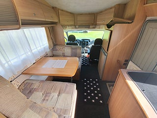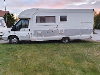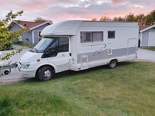 Ford Transit 350I Rimor Sailor halvitegrerad.2004. 13.000 mil längtd 7.0 bred:2.20 höjt 2.80.stor kylskåp kasettoilet med separat dusch reg för 6 passagerare.sovplats 5 Dubbelsäng bak heki taklucka. Tjänste vikt 3040 kg maxlast 460 kg.totalvikt 3500 kg stor garage. Markis.ac i hytten .elhissar. säljes billigt p.ga fel på knytkors lite vibaration när man kör runt 100km i timmen. Pris:135.000 till seriös köpare Ring säljaren Robert 0722593525