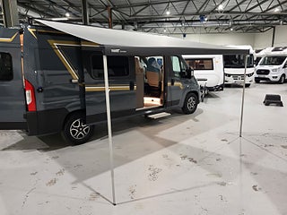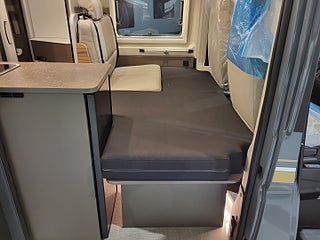 Hjuldrift: Framhjulsdrift, Centre seating group convertible to bed, Liten och smidig plåtis med möjlighet att bädda ner sittgruppen till en extra säng. 140Hk med automatlåda. 8-växlad automatväxellåda, myggnätsplissé för skjutdörr, 2-lågig spis med integrerad diskho och separat glaslock, Kompressorkylskåp 84 l (varav frysfack 6 l), Multimediasystem inkl. backkamera ( AndroidAuto / Carplay), Markis i antracit ? 3.75 m, Vinteranpassad med uppvärmd spillvattentank