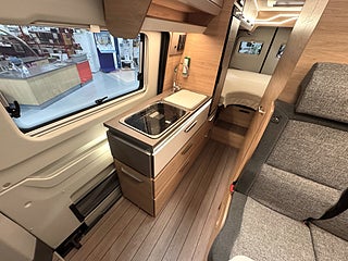 Hjuldrift: Framhjulsdrift, Motortyp: MAN TGE 35 2.0 l E6d, MAN TGE 35 Kasten Motor: 2, 8-växlad automatisk växellåda, Lackering Metallic: Starlight Blue, Stämningsbelysning i köksbänkskivan, BLACK SELECTION Lackering Däck och fälg 20tum, Iso-Fix-system för två barnstolar, 8-växlad automatisk växellåda, Eltillsatts för Truma Combi D, Viktökning 3500kg till 4000kg
