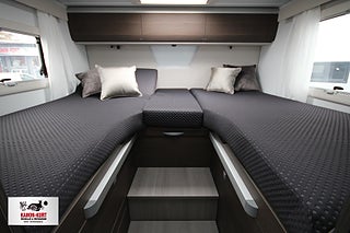 Modellår: 2026, Karosstyp: Halvintegrerad, Airbag förare och passagerare, Manuell luftkonditionering, Nedlackade stötfångare i bilens färg, ALDE vattenburen centralvärme, ALDE vattenburen golvvärme, Isolerad och uppvärmd spillvattentank, DC/DC Converter (laddningsbooster), Elektrisk tömning spillvattentank, Entrédörr med fönster och myggnät och sopbehållare, Förberedd med fästen för barnstol (Isofix), Förberedelse för lufkonditionering/parabolantenn/solpanel, Gasolutrymme med plats för 2x11 kg gasolflaskor, Plisségardin vid vindruta och sidorutor i bildel, Textilpaket (kuddar och sängöverdrag), Kurts Husvagnar AB