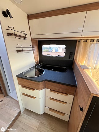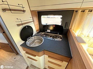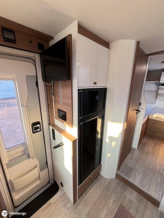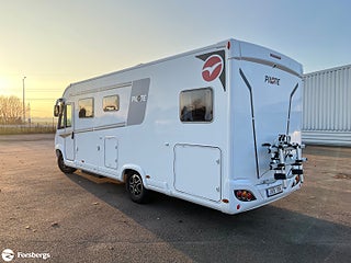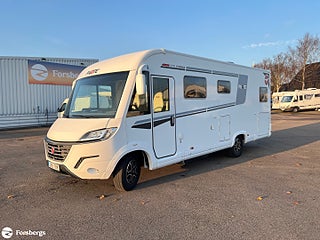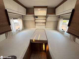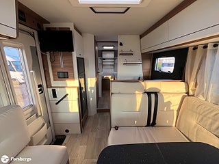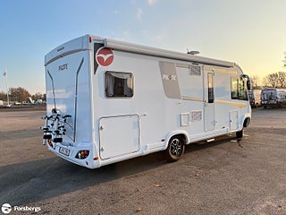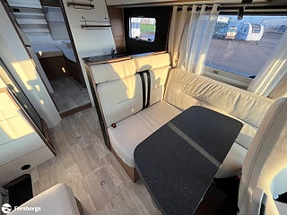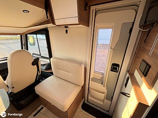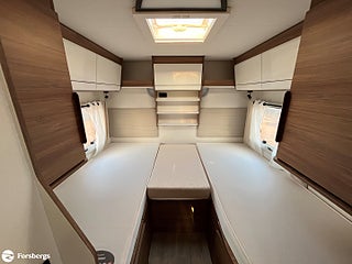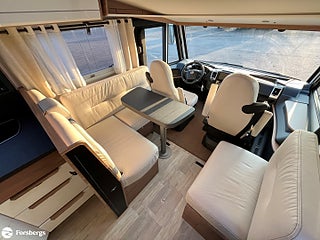 Fiat 160hk + Eco Pack Euro 6d-motor, ESP inkl ASR och Hillholder, Heavy-chassi och förstärkt fjädring framtill, ALDE-PAKET Alde 3020 HE med värmeväxlare och extra Alde cirkulationspump, Reglage på ratten mätare med krom, instrumentbräda med aluminium, ratt och växelspaksknopp med skinn, Nedfällbar dubbelsäng ovanför framstolarna, Extra sovplats mellan enkelsängar, Dörr till bodelen med fönster, 2-punktsstängning med centrallås, mörkläggningsgardiner med glidmekanism, elektriskt fotsteg och matta i förarhytten, Android Auto/Apple CarPlay, högtalare i förarhytt och bodel, Klädsel av skinnimitation Plume, Högglansig träyta på de övre skåpens dörrar, Utvändig utdragbar förvaringslåda.