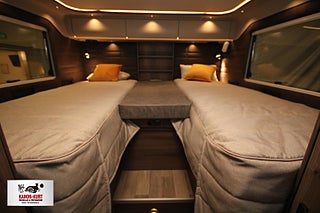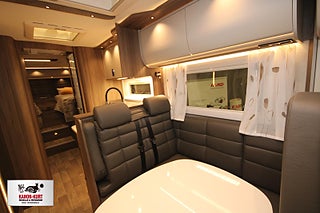 Modellår: 2026, Adaptiv farthållare - avstånd till framförvarande fordon, Airbag på passagerarplats, Aluminiumutsida väggar och tak - dekaler med 3D-känsla, Automatisk avbländning helljus, Bränsletank (diesel) 92 liter, Chassi: Mercedes-Benz 5500 kg, DRL daytime running light, Elektrisk parkeringsbroms, ESP/ASR antisladd och antispinnsystem, Förar- och passagerarstol med dubbla armstöd, Förar- och passagerarstol med höjdjustering, Förar- och passagerarstol med svängbart underrede, Intelligent hastighetsanpassning, Körfältscentrering - Active lane keeping assist, Lackerade stötfångare fram, LED belysning halv- och helljus, Mercedes-Benz ServiceCare Complete, Motor: Mercedes-Benz 190 hk (RWD), Spacers - bredare spårvidd, Växellåda 9 vxl automat - 9G-tronic, Ytterbackspeglar elektriska (justerbara och uppvärmda), Centrallås utvändiga luckor, Ecoprim-isolering i väggar/golv/tak, Fjärrstyrt centrallås - även bodelsdörr, Mellantonade dubbelfönster - D-Lux grå metallic, Stadig och fuktsäker kaross, Utdragbart & uppvärmt skidfack med belysning samt fackverk från sidan, Antislip-beklädnad undersida dynor, Arbetsbänk med hybridspis (2 gasolplattor och en induktionsplatta), Avfallshink med källsortering, Belysning under arbetsbänksskivan i köket, Belysningsramper överskåp/insteg/sovdel, Bodelsdörr Premium - HartaLux, Dusch i separat duschkabin, Elektrisk tömning av färskvattentank (även manuell funktion), Elektrisk tömning av spillvattentank (även manuell funktion), Engreppsblandare i kök och toalett, Ergonomiskt utformade sittdynor i Premium Foam, Exklusiva luckor överskåp, Färskvattentank 20/200 liter, Förar- och passagerarstol med KABEs egen fasta klädsel, Gardiner (ej i sovrummet), Högkvalitativa snickerier, Inredning med optimal luftcirkulation, Kylskåp med köldfack - Thetford grunt (141 liter), Köksfläkt med motor och fettfilter, Ljudisolerande mjukt innertak, Mörkläggningsgardiner (även bildel), Nedsänkbar dubbelsäng över dinette - elektrisk, Optimerad kylskåpsventilation, Optimerat ventilationssystem, Porslinsskåpsluckor Sabbia High Gloss, Sidogardinuppsättning med ljuslist, Spiralmadrass och bäddmadrass (tunnare bäddmadrass i LGB/LQB-modeller), Spis med elektrisk tändning, Steglös rullgardin och myggnät i alla öppningsbara fönster, Stoppad sänggavel - mockaimitation med belysning, Toalettrum med tvättställ/duschkar/skåp/bänkskiva i laminatet Light Concrete, Upphängningslist med två krokar i köket, Uppvärmd gråvattentank 102 liter, Ventilerad taklucka Mini Heki med myggnät och mörkläggningsgardin, Ventilerade takluckor Heki II med myggnät och mörkläggningsgardin, Vridbar spoltoalett med keramikskål - fast installerad med utvändig tömning, Vridplatta / utdragsskena gasol, Aircondition bodel - Fresh Jet FJX7 2600, ALDE Compact 3030 centralvärme gasol, Automatiskt golvvärmesystem AGS II Pro, Bränslevärmare motorkrets, Dubbelfönster förardel sidor, Elpatron 230 V (3 kW/3 stegs), Extra värmepaket i sidohurtsen kopplat till golvvärmesystemet, Konvektorer vid insteg till dörr, Optimerat ventilationssystem, Termogardin nedtill i hytten, Torkskåp med droppfat och stängningsbar ventilator, VarioVent - unikt ventilationssystem, Vattenburen golvvärme i hytt med konvektorer i insteg, Vinteranpassat vattensystem, Värmepaket vid passagerarstol, Elektrisk låsning arbetsbänk, Inbrottslarm med skalskydd, KABE Smart Level (gasolnivåsensor/däcktryckssensor, Kraschsensor på gasolsystemet, Rörelsesensor utebelysning, Slangbrottsventil på gasolsystemet, Indirekt belysning vid överskåp, IP-radio via KABE Smart D 2.0, MBUX (inklusive backkamera), Router (exkl. abonnemang), Utvändigt 230 V / 12 V / TV-uttag / intag för centralantenn, Kurts Husvagnar AB
