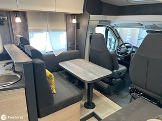 Hjuldrift: Framhjulsdrift, Hyttlackering i svartmetallic, Dubbelbädd Stort badrum längs bak, Märke chassi: FIAT lågramschassi Maxi - 4 400 kg, Motortyp: 2.2 l - 132 kW - Euro 6e, Sverigepaket MAXIA T. Motor 180 hk/8-stegs automat vxl-låda, Hyttlackering i svartmetallic, öppningsbart med dubbelt glas och toning, Kombikassetter med mörkläggning och insektsnät, Bicolor lättmetallfälgar 16", 2.2 l motor med 132 kW/180 hk-, Euro 6e med start/stopp-system och ECO-Pack, automatisk växellåda (inklusive FIAT lågramschassi Maxi, FIAT lågramschassi Maxi 4 400 kg, uppvärmda ytterbackspeglar, Förar och passagerarkrockkudde, Förlängda ytterbackspeglar, Halogenstrålkastare med varselljus, Klimatanläggning förarhytt, Lackerade stötfångare inkl. svart Skid-Plate, elektroniskt reglerbar klimatanläggning med pollenflter, laddningsfunktion för smartphone, digital instrumentpanel med 7", Ratt och växelspaksknopp i, läder och instrumentbräda med Techno Trim, Varningstriangel och förbandslåda, passagerarsäte klätt med samma material som vid sittgrupp, Förar och passagerarsäte med armstöd (?kaptensstol?) med svankstöd och, Förar-och passagerarsätet kan vridas, Mörkläggningssystem REMIS för vindruta samt, med dubbelglas och toning, USB-laddningsport (USB-A/, Akterförstärkning för cykelhållare, GRP-tak för optimalt hagelskydd, extra bred med dubbel låsning inkl fönster och avfallskorg och förvaringsfack, Insektsskydd för ingångsdörr, Instegstrappa dubbel - elektriskt utfällbar, Utdragslåda för gasolfaskor som passar, Taklucka DOMETIC-SEITZ Midi-Heki 700 x 500, mm med mörkläggningsgardin och insektsskyddsplissé i vardagsrum, Taklucka DOMETIC-SEITZ Mini-Heki 400 x 400 mm med, mörkläggningsgardin och insektsskyddsplissé i sovrum, DOMETIC-SEITZ Mini-Heki 400 x 400 mm med, mörkläggningsgardin och insektsskyddsplissé i badrum, L-sittgrupp med fällbart pelarbord som kan svängas, Överskåp med stort förvaringsutrymme, Tröskelfri övergång mellan förarhytt och bodel, Kylskåp (AES) DOMETIC 133 liters med dubbelhängd dörr och, Designspis ?Gas-on-Glass? med 3 lågor och, Ribbottensystem GOODSIDE®, Duschvägg i badrumet och Spegelskåp, duscharmatur och förvaringsytor, Vridbar toalett från THETFORD, Bodelsbatteri AGM 12V 95Ah, Dubbel USB-laddningsport A/C, Extrauttag (1 x 12 V/2 x 230 V/2 x Kombi USB A/C), Färskvattentank 100 liter - rostskyddad, installationer i golvplattformen, Strömförsörjning 12 V och 230 V, Uttag i garaget 12 V och 230V, Förberedelse för solpanel, övertryckssäkring (DIN EN 12 864) och slang, LED-belysning för arbetsbänk i köket och i garaget, Lässpotlights i sittgruppen, Interiör stämningsbelysning (modell beroende), LCDmanöverpanel TRUMA Combi CP Plus, Värmesystem TRUMA Combi 6 E inkl. 10 liters, varmvattenberedare och frostskyddsventil, takmonterad luftkonditionering, styrning för intern teknik via Hobby-manöverpanel och Bluetooth, Extra högtalare för sittgrup, Apple CarPlay/Android Auto och backkamera, TV-uttag inkl. 12 V 230V och antennuttag, Sverigepaket MAXIA T inhåller - Motor 180 hk och 8-stegs automat växellåda