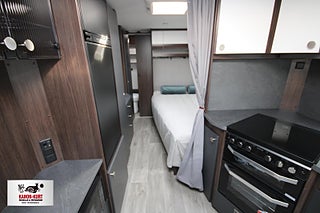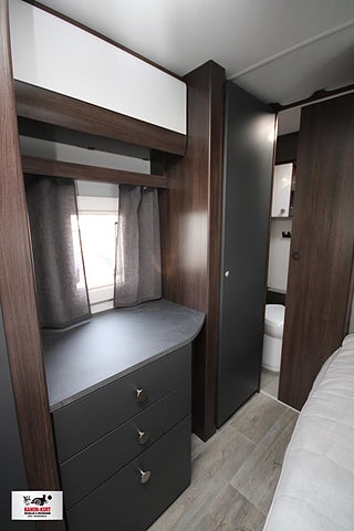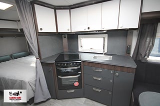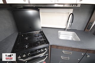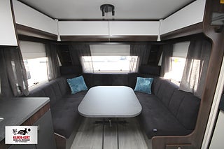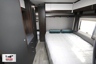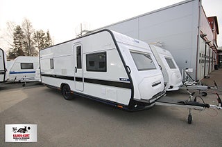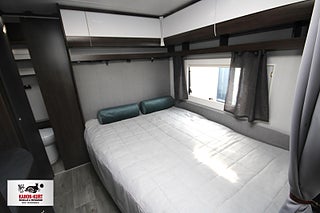 Modellår: 2025, 4-lågig spis med gasolugn, Luckor kök överdel vit/ nederdel greige, Stort fönster vid köksbänk, 230 V-uttag vid sänggavel, Sängbelysning med USB-uttag, Vridbar elektrisk kassettoalett, Centralvärmepanna växlar automatiskt mellan el & gasol, Cirkulationspump 12 V - ställbar, Midi heki taklucka 500x700 fram, Möjligt att reglera golvvärme/ element, Nivåmätare avloppstank & färskvatten, Automatiskt uppvärmt avlopp 230 V, LED-belysning lastlucka & gasolkoffert, Mellantonade fönster med slät utsida/steglöst reglerbara/rullgardin & myggnät, Polar connect + tertek antenn, Svarta fälgar (samma som blackline), Täcklister gardiner runt om fram, Kurts Husvagnar AB