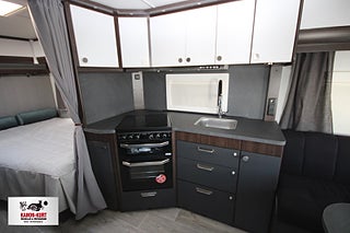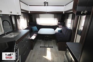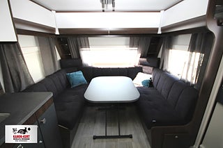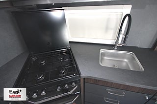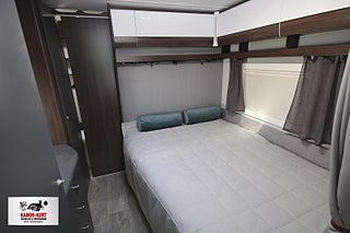 Modellår: 2025, 4-lågig spis med gasolugn, Luckor kök överdel vit/ nederdel greige, Stort fönster vid köksbänk, 230 V-uttag vid sänggavel, Sängbelysning med USB-uttag, Vridbar elektrisk kassettoalett, Centralvärmepanna växlar automatiskt mellan el & gasol, Cirkulationspump 12 V - ställbar, Midi heki taklucka 500x700 fram, Möjligt att reglera golvvärme/ element, Nivåmätare avloppstank & färskvatten, Automatiskt uppvärmt avlopp 230 V, LED-belysning lastlucka & gasolkoffert, Mellantonade fönster med slät utsida/steglöst reglerbara/rullgardin & myggnät, Polar connect + tertek antenn, Svarta fälgar (samma som Blackline), Täcklister gardiner runt om fram, Kurts Husvagnar AB