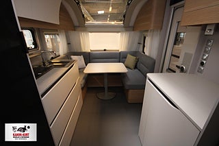 Modellår: 2024, STANDARDUTRUSTNING. 3-lågig spis, Extra spotlights vid sittgruppen, Färskvattentank 20/50 L - reglerbar, Kallskum i dynor vid sittgrupp, Ställbar huvudända på dubbelsäng, Täckskiva för diskho/skärbräda, Kurts Husvagnar AB