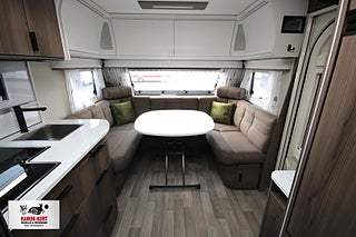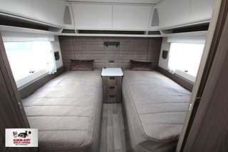 Modellår: 2026, AL-KO helgalvaniserat stålprofilchassi med självjusterande bromsar, Ecoprim-isolering (golv/tak/väggar) 36 mm, Exklusiv kaross med integrerad runtomprofil, Formgjuten skyddsmatta i gasolkoffert, Krängningshämmande friktionskoppling, Mellantonade fönster med steglöst myggnät och mörkläggningsgardin, Påskjutsbroms med backautomatik, Skidfack med utdragbar botten/utvändig låsbar lucka/belysning, Slät plåt med tryckt mönster, Stadig och fuktsäker kaross, Vagnsbred integrerad gasolkoffert i ABS med belysning, Ventilerande takluckor Mini Heki med myggnät och mörkläggningsgardiner, Ytterdörr (Seitz) med integrerat myggnät och tröskelvärme, Antislip-beklädnad undersida dynor, Barskåp med tonat plexi och flaskförvaring (från sidan) i hurts, Exklusiva luckor överskåp, Gardinupphängning med kappa, Högkvalitativa snickerier, Indirekt belysning undersida överskåp, Porslinsskåpsluckor Atlas Zeder, Taklampa klädd i mockaimitation, Överskåpsluckor fram och bak Grau, Arbetsbänk i Atlas Zeder med 3-lågigt gasolkök, Engreppsblandare i kök och toalett, Kylskåp 230V/12V/gasol (volym 167 liter inkl. köldfack 29 liter), Kylskåpsfront Atlas Zeder, Köksfläkt med motor/fettfilter/belysning, Optimerad kylskåpsventilation, Plexi med belysning vid arbetsbänk, Spillvattentank 32 liter (inbyggd samt utvändig spillvattensäck), Spis med elektrisk tändning, Upphängningslist med två krokar, Vattentank 40 liter med utvändig påfyllning, Spiralmadrass 12 cm + bäddmadrasser 6 cm, Stoppad sänggavel - mockaimitation, Automatiskt vattensystem/varmvattenberedare, Laminat Urban Style i bänkskiva (stenimitation), Vridbar spoltoalett - fast installerad med utvändig tömning, 12V-anslutning med 13-polig kontakt - system Jäger, Dimmer ljusramp vid framgrupp, Dimmer stämningsbelysning kök, Elbox: utvändig 230V/12V uttag/centralantennanslutning/indikatorlampa 230V, Elcentral 230V - 16A med automatsäkringar, Förberett för högtalare bak, Förtältsbelysning (LED) i aluminiumprofil, Garderobsbelysning samt belysning i sänglådor, Indirekt belysning överskåp bak, LED-belysning i samtliga lampor, LED-belysning vid kylskåp Neonflex, Servicecenter med kontrollpanel, TV-antenn med förstärkare, Utvändigt 230 V/12 V uttag, Alde Compact 3030 centralvärme med touchscreen för klocka samt inne- och utetemperatur, Automatiskt vattenburet golvvärmesystem - 4 slingor och shuntsystem (AGS II Pro), Belastningsvakt som automatiskt minskar/kopplar bort pannans strömförbrukning, Optimerat ventilationssystem, VarioVent - unikt ventilationssystem, Avfallshink med källsortering, Enhetligt låssystem - en nyckel till samtliga lås, Utvändig gasolanslutning för grill placerad i gasolkoffert, Kurts Husvagnar AB