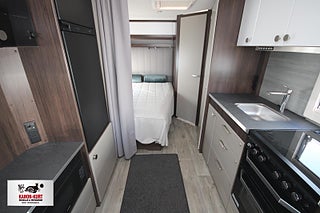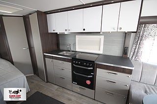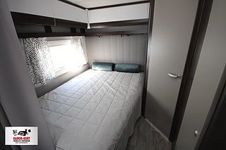Modellår: 2025, 4-lågig spis med gasolugn, Stort fönster vid köksbänk, Automatiskt uppvärmt avlopp 230 V, Lastlucka bak inkl belysning, LED-belysning lastlucka & gasolkoffert, Mellantonade fönster med slät utsida/steglöst reglerbara/rullgardin & myggnät, 230 V-uttag vid sänggavel, Sängbelysning med USB-uttag, Vridbar elektrisk kassettoalett, Centralvärmepanna växlar automatiskt mellan el & gasol, Cirkulationspump 12 V - ställbar, Midi heki taklucka 500x700 fram, Möjligt att reglera golvvärme/element, Nivåmätare avloppstank & färskvatten, Kurts Husvagnar AB
