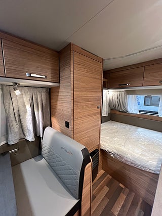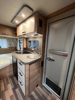 Klädselalternativ: EDITION [HOT], Aluminiumfälgar för enkelaxel, Strömförsörjning 12 V bestående av automatisk laddare huvudströmbrytare och indikator för färskvattennivå, Vattenfiltersystem "bluuwater", TRUMA Ultraheat 220 V centralvärme, TRUMA Therme varmvatten kök och bad (230 V), Färskvattentank 45 liter fast inbyggd