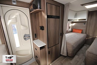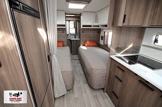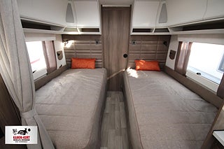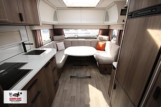 Modellår: 2026, AL-KO helgalvaniserat stålprofilchassi med självjusterande bromsar, Ecoprim-isolering (golv/tak/väggar) 36 mm, Exklusiv kaross med integrerad runtomprofil, Formgjuten skyddsmatta i gasolkoffert, Krängningshämmande friktionskoppling, Mellantonade fönster med steglöst myggnät och mörkläggningsgardin, Påskjutsbroms med backautomatik, Skidfack med utdragbar botten/utvändig låsbar lucka/belysning, Slät plåt med tryckt mönster, Stadig och fuktsäker kaross, Vagnsbred integrerad gasolkoffert i ABS med belysning, Ventilerande takluckor Mini Heki med myggnät och mörkläggningsgardiner, Ytterdörr (Seitz) med integrerat myggnät och tröskelvärme, Antislip-beklädnad undersida dynor, Barskåp med tonat plexi och flaskförvaring (från sidan) i hurts, Exklusiva luckor överskåp, Gardinupphängning med kappa, Högkvalitativa snickerier, Indirekt belysning undersida överskåp, Porslinsskåpsluckor Atlas Zeder, Taklampa klädd i mockaimitation, Överskåpsluckor fram och bak Grau, Arbetsbänk i Atlas Zeder med 3-lågigt gasolkök, Engreppsblandare i kök och toalett, Kylskåp 230V/12V/gasol (volym 167 liter inkl. köldfack 29 liter), Kylskåpsfront Atlas Zeder, Köksfläkt med motor/fettfilter/belysning, Optimerad kylskåpsventilation, Plexi med belysning vid arbetsbänk, Spillvattentank 32 liter (inbyggd samt utvändig spillvattensäck), Spis med elektrisk tändning, Upphängningslist med två krokar, Vattentank 40 liter med utvändig påfyllning, Spiralmadrass 12 cm + bäddmadrasser 6 cm, Stoppad sänggavel - mockaimitation, Automatiskt vattensystem/varmvattenberedare, Laminat Urban Style i bänkskiva (stenimitation), Vridbar spoltoalett - fast installerad med utvändig tömning, 12V-anslutning med 13-polig kontakt - system Jäger, Dimmer ljusramp vid framgrupp, Dimmer stämningsbelysning kök, Elbox: utvändig 230V/12V uttag/centralantennanslutning/indikatorlampa 230V, Elcentral 230V - 16A med automatsäkringar, Förberett för högtalare bak, Förtältsbelysning (LED) i aluminiumprofil, Garderobsbelysning samt belysning i sänglådor, Indirekt belysning överskåp bak, LED-belysning i samtliga lampor, LED-belysning vid kylskåp Neonflex, Servicecenter med kontrollpanel, TV-antenn med förstärkare, Utvändigt 230 V/12 V uttag, Alde Compact 3030 centralvärme med touchscreen för klocka samt inne- och utetemperatur, Automatiskt vattenburet golvvärmesystem - 4 slingor och shuntsystem (AGS II Pro), Belastningsvakt som automatiskt minskar / kopplar bort pannans strömförbrukning, Optimerat ventilationssystem, Torkskåp med droppfat och stängningsbar ventilator, VarioVent - unikt ventilationssystem, Avfallshink med källsortering, Enhetligt låssystem - en nyckel till samtliga lås, Utvändig gasolanslutning för grill placerad i gasolkoffert, Kurts Husvagnar AB