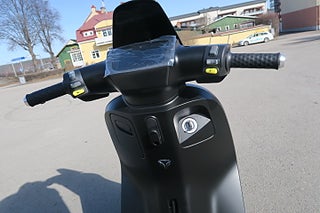 Stilren design med gott om plats för både förare och passagerare. Tyst och stark motor med 2st effektlägen. Keyless startfunktion (nyckel kan ligga kvar i fickan). Batteriet är placerat under fötterna vilket ger en låg tyngdpunkt, jämn viktfördelning och ett välbalanserat fordon. 12” hjul ökar komfort och säkerheten. USB-uttag för laddning av t.ex. smartphone. Elsystem och komponenter är designade för att klara vårt nordiska klimat med regn salt och kyla. Hjälmfack under sadeln. Panasonic battericeller med talk-back funktion som i kombination med smart laddaren optimerar batteriets livslängd. 45km/h Euro 5
