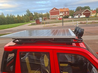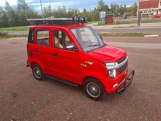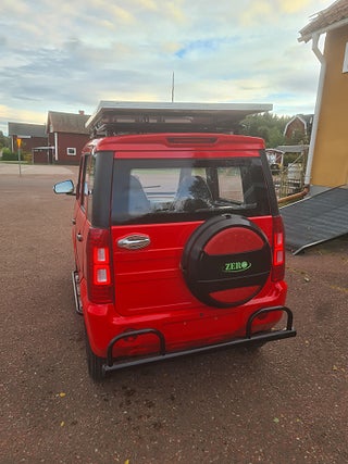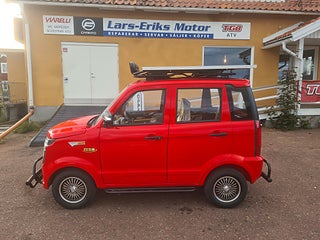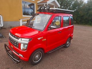 OBS NU I LAGER IGEN!! Titan Zero R7 EL/BENSIN MOPEDBIL Kör upp till 15 mil på en tank (4 liter) Det närmaste man kan komma en "riktigt" bil . Här kan ni åka 4-5 personer i 25km/h utförandet (klass 2 moped) Gör ca 30km/h, med alla funktioner som en vanlig modern bil har. Den eldrivna mopedbilen är utrustad till "Max" redan från början. Inget behövs köpas till. Du kör riktigt billigt ! Du parkerar bilen mycket enkelt och bland trängre utrymmen där "Vanliga" bilar inte får plats. En perfekt pendlar bil om du bor inom rimligt avstånd, eller varför inte ta en sväng ner på stan ? En extremt rolig bil för 4-5 personer, roligt och billigt......................... Teknisk Data: -längd 302cm bredd 142cm höjd160cm, 25km/h får framföras med det enklare klass II förarbeviset eller om du är född innan 1994 så behövs inget förarbevis/körkort alls! 45km/h (framförs med A eller B-behörighet) - Laddtid: 6-8 timmar i vanligt 230V vägguttag - Räckvidd: upp till 8 mil med enbart batteri drift, Milkostnad: ca 80 öre/mil Färger: vit, röd utrustning: Ramuppbyggt chassi med deformerbara zoner för hög krocksäkerhet. Aluminiumfälgar Elektriska fönsterhissar fram, Automatiskt halvljus LED-strålkastare LED-bakljus Kupévärme Defroster Stereo med back kamera backspeglar, Skivbromsar runt om! kraftig solcell på taket hela 350watt! börjar ladda så fort det är ljust ute! Bensin generator under huven på hela 3500watt med elstart från instrument panelen, kan användas även under körning om man vill åka längre sträckor eller inte har tillgång till laddplats, Generatorn ger cirka 1ggr mer effekt än vad elmotorn tar!