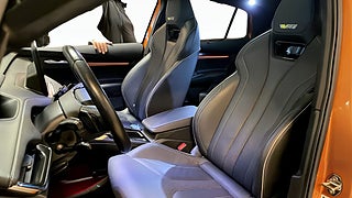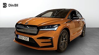 En sportig och topputrustad el-SUV-coupé med 299 hk, fyrhjulsdrift och RS-design.?koda Enyaq Coupé RS iV kombinerar prestanda, komfort och teknik i absolut toppklass ? perfekt för dig som vill ha både kraft och elegans i en elbil.Drivlina & PrestandaDual motor (4x4)Effekt: 299 hkAcceleration 0?100 km/h: ca 6,5 sekunderBatteri: 82 kWh brutto (77 kWh netto)Räckvidd (WLTP): upp till 540 kmTopphastighet: 180 km/hLaddningAC-laddning: upp till 11 kW (3-fas)DC snabbladdning: upp till 135 kWLaddtid:10?80 % på ca 30?35 minuter via snabbladdare0?100 % på ca 6?8 timmar via laddboxVärmepump ? effektivare uppvärmning och längre vinterräckviddUtrustning ? HöjdpunkterDesign RS Suite ? helskinnsklädsel & sportstolarCanton ljudsystem ? premiumljud med subwooferUtfällbar dragkrok (elstyrd)Panoramaglastak ? öppningsbart och tonatMatrix LED-strålkastare ? automatiska helljus med adaptivt ljusflödeElstolar fram med minne för förarstolStolsvärme fram och bakEluppvärmd rattElektrisk baklucka med handsfree-funktionAdaptiv farthållare (ACC)Lane Assist & Blind Spot DetectBackkamera & parkeringssensorer fram/bakTrådlös mobilladdningApple CarPlay & Android Auto (trådlöst)Digital cockpit & stor pekskärm med navigationVärmepump (ingår i Climate Plus)Family Basic-paket ? extra USB-uttag & praktiska detaljer för familjTonade rutor & svart innertak20? RS-fälgarRS-detaljer exteriört & interiörtFördelarFyrhjulsdriven elbil med 299 hkRäckvidd upp till 540 km (WLTP)Snabbladdning upp till 135 kWDragkrok & panoramatakHelskinn & premiumljud från CantonMatrix LED och adaptiva assistanssystemVärmepump och vinterkomfort i toppklassSammanfattning?koda Enyaq Coupé RS iV 299 hk ? 2023 är en kraftfull och exklusiv el-SUV-coupé som erbjuder prestanda, lyx och teknik på högsta nivå.Med 4x4, lång räckvidd, RS-läderinredning, Canton-ljud, panoramatak och elektrisk dragkrok får du en komplett elbil för både vardag och långresa.En sportig och komfortabel toppmodell som förenar RS-prestanda med eldriven effektivitet.