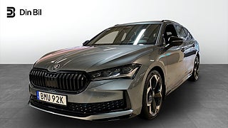 En mycket kraftfull och exklusivt utrustad ?koda Superb Kombi med 265 hk bensinmotor, fyrhjulsdrift och DSG-automat. En premiumkombi som kombinerar sportig prestanda med klassledande utrymmen och hög komfort.Utrustning ? HöjdpunkterPrestanda & Körning2.0 TSI 265 hk ? stark och responsiv bensinmotor4x4 fyrhjulsdrift ? maximal stabilitet året runtDSG automatlåda ? snabb och mjuk växlingAssisted Drive Plus ? avancerade förarassistanssystem för långkörningKomfort & PremiumSportline-interiör (Suite) ? sportig och exklusiv känslaCanton ljudsystem ? högklassigt ljud i hela kupénFjärr- och appstyrd parkeringsvärmare ? varm bil vintertidFamiljepaket ? praktiska lösningar för vardagenFörlängd garanti 3 år / 100 000 kmPraktiskt & ExteriörElektriskt utfällbar dragkrok inkl. adapter19? Torcular lättmetallfälgar i svart utförandeCare Connect & Infotainment Online ? förberettSammanfattning?koda Superb Kombi 2.0 TSI 4x4 är en av marknadens mest kompletta bensinkombis. Med stark motor, fyrhjulsdrift, Sportline-utförande, Canton-ljud och parkeringsvärmare får du en bil som levererar både körglädje och komfort på hög nivå.En premiumkombi med sportig karaktär och generösa utrymmen ? redo för alla mil.