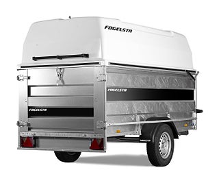 Välkonstruerad och slitstark vagn med låsförberedd glasfiberhuv (65 cm) och mycket bra lastningskapacitet. Mycket goda köregenskaper tack vare den behändiga storleken. Utrustade med 80 cm höga lämmar, stödhjul och sidohängd bakdörr.