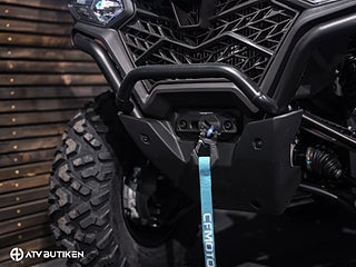 Grovmönstrade 25-tumsdäck, 250 mm markfrigång och individuell hjulupphängning med dubbla A-armar ger god framkomlighet även i ojämn eller lerig miljö. Standardutrustad med med både vinsch och dragkula, är den dessutom klar för enklare transport- och draguppgifter direkt från fabrik.
