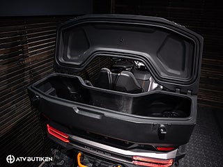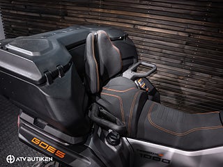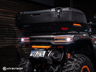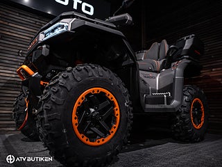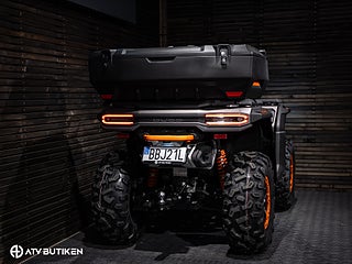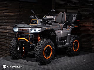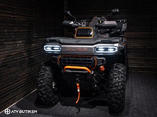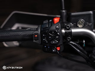 Den stora V-Twin-motorn ger jämn och förutsägbar kraft, medan servostyrningen och den välbalanserade fjädringen gör körningen bekväm även i tuff terräng. Konstruktionen är robust på riktigt – ramen är förstärkt, markfrigången hög och komponenterna dimensionerade för lång livslängd.