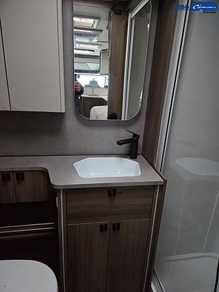 STOLSVÄRME/KYLA (FLÄKT) BÅDA STOLARNA MERCEDES, TOALETT FÖRBRÄNNINGSTOA (* kan upplevas som trångt), UTSKJUTBART FOTSTEG FÖRARDÖRR, Airbag förare & passagerare, Bordsstativ - höj och sänkbart, Luftkonditionering - bildel, Vinterisolerad avloppstank