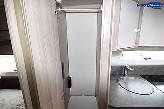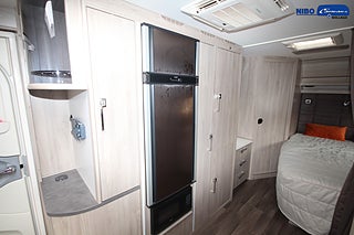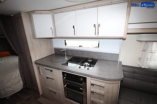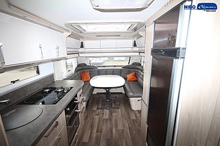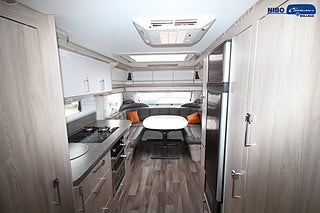 ALDE - vattenburen centralvärme, Värmeelement i hygienutrymmet, Gasoluttag i koffert med snabbfäste, Gasolugn med separat grill, Stort kylskåp med separat frys, Eluttag för TV-antenn/12V/230V - utvändigt, Färskvattentank - frysskyddad, Spillvattentank - frysskyddad, Fönster med mörkläggning/myggnät, Isolering 36 mm med slutna celler, KABE Premium Sound System, Induktionshäll (el - 2 st plattor)