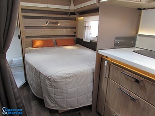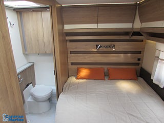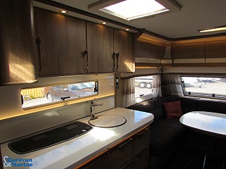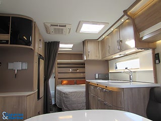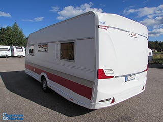 Trevlig dubbelbäddsvagn från Kabe, Dometic takmonterad Aircondition Kassettoalett, Myggnätskassetter i fönstren, Combibox med el/antennuttag, Kan viktas upp till 1700 kg