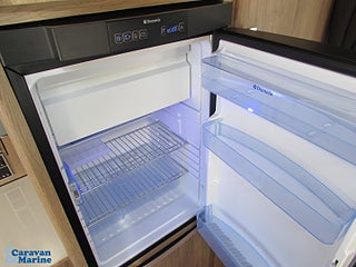 bekväma separata enkelsängar, Bäddningsbar sittgrupp fram, Dometic takmonterad Aircondition, Myggnätskassetter i fönstren, Ventilationslucka i sovdelen, Kan viktas upp till 1700 kg