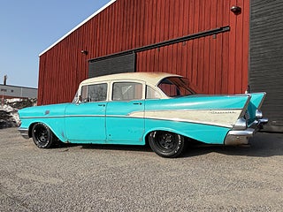 Patinerad Cheva 1957 mer rätt stuk säljes! V8 350" och PG automatlåda som funkar kanonfint. Nya hjul. Sänkt. Alla mätare funkar samt fläkt och värme. Avbetalning ordnas från 2200:- per månad. Transport i hela landet ----VÄLKOMMEN TILL OSS I LJUSDAL!----
