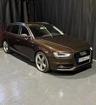 Audi A4 Avant S-line i snygg tillvalsfärg som verkligen sticker ut. Utrustad med motorvärmare och stilrena RS-fälgar som ger bilen ett sportigt och exklusivt utseende. En praktisk och komfortabel kombi som passar lika bra som familjebil som pendlarbil. Välhållen och redo för ny ägare.