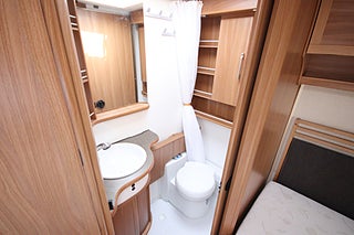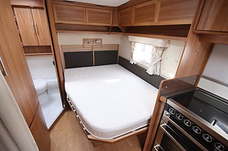 Utvändigt gasoluttag i sidovägg, Total längd inkl drag 730 cm, Dubbelbädd (franskbädd) och toa bak