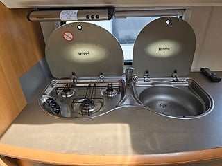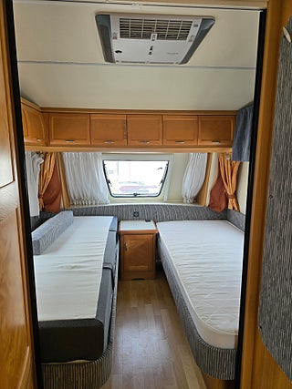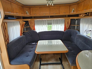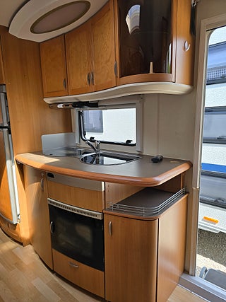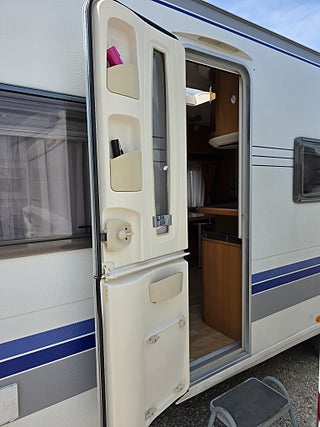 ***Stor och rymlig vagn från Hobby. Välutrustad med bland annat AC och Aldevärme samt ugn. Stor kyl med separat frys. 5 sängplatser.