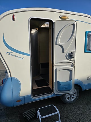 ***Är du en fricampare och vill ha en husvagn som är lätt och smidig? Då ska du kika på den här Adria Action. Totalvikt endast 900 kg. Compactliving i ordets sanna bemärkelse. Ändå en känsla av rymlighet och smart planlösning. Långbäddarna görs om på bara några sekunder till en stor dubbelsäng. Välutrustad!!