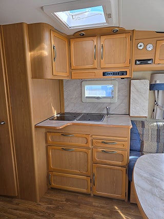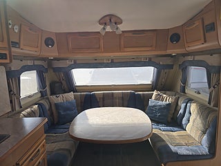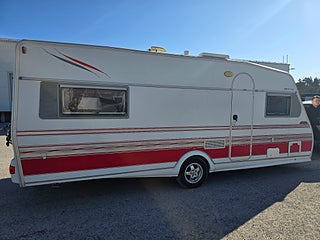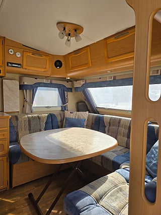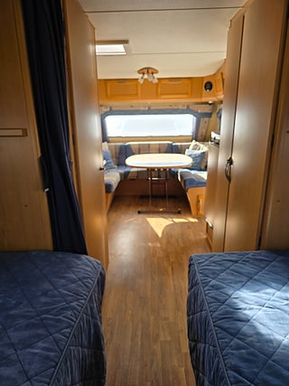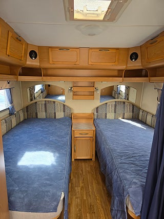 ***Fin Kabe med sköna långbäddar och Alde vattenburen värme. Vagnen fungerar bra som året-runt husvagn. Rymlig med tanke på fullbredd och bra planlösning. Förtält ingår.