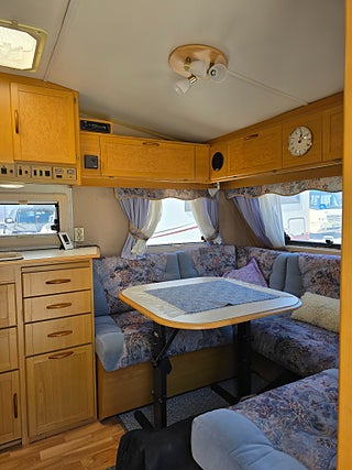***Klassisk 90-talare från Kabe med Aldevärme och fulbredd. Sköna långbäddar och bäddbar sittdel. Campingutrustning såsom stolar och bord med mera följer med. Totalvikt på 1490 kg och lastvikt på 250 kg. Prisvärd! Välkommen att ringa eller maila vid frågor eller kom in till oss på Österbyväg 16 i Visby månd-fred 10-17 lör 10-13 // Mathias & Morten 0498-22 10 40 info@majasfritid.se