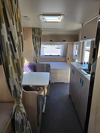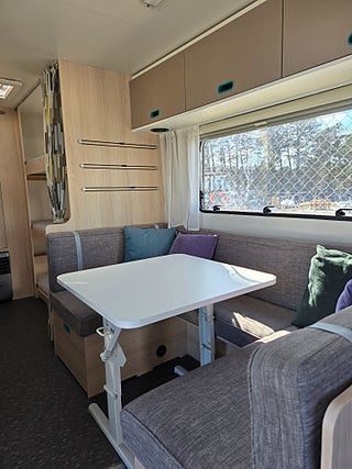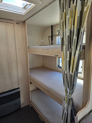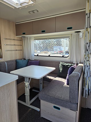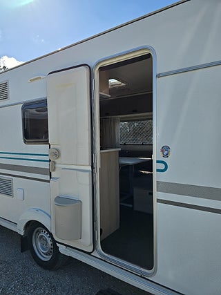 ***Fin husvagn från Adria med plats för den något större familjen. Såld ny på Gotland. Längst bak i vagnen finns badrummet med toa och dusch samt 3-våningssängen. Den bäddbara sittdelen finns i anslutning till köket. Stort kylskåp med frysfack. Stora dubbelsängen hittar ni längst fram i vagnen. Trevlig planlösning. Förtält ingår.