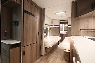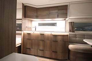 AL-KO helgalvaniserat stålprofilchassi med självjusterande bromsar, Mellantonade fönster med steglöst myggnät och mörkläggningsgardin, Skidfack med utdragbar botten och belysning, Slät plåt med tryckt mönster, Alde Compact 3030 centralvärme, Automatiskt vattenburet golvvärmesystem, VarioVent - unikt ventilationssystem, Invändig gråvattentank 32 L, Kylskåp 230 V / 12 V / gasol. Volym 167 liter. inkl. köldfack 29 liter, Vattentank 40 liter med utvändig påfyllning, Ergonomiska sittdynor. Premium Foam-stoppning, Spiralmadrass 12 cm + bäddmadrasser 6 cm, Dimmer stämningsbelysning kök. ljusramp vid framgrupp och främre taklampa, TV-antenn med förstärkare, Utvändigt 230 V / 12 V uttag, Utvändig gasolanslutning för grill placerad i gasolkoffert, Valbar totalvikt/lastvikt: 1800/113, Komfortpaket Ädelsten: Nackkuddar. Lastlucka. Handdukstork. Elektriskt uppfällbart huvudgärde i sängarna