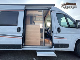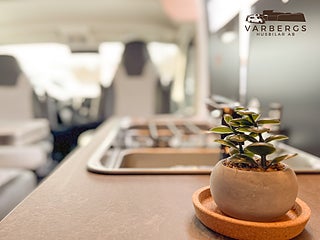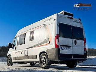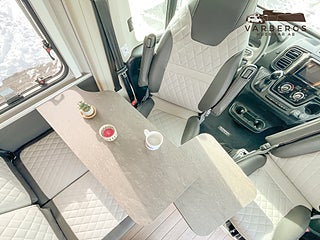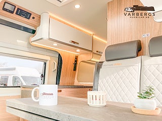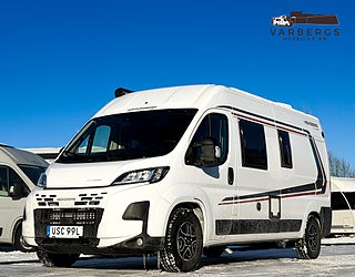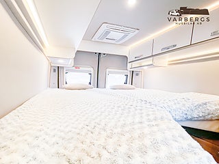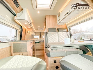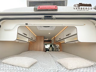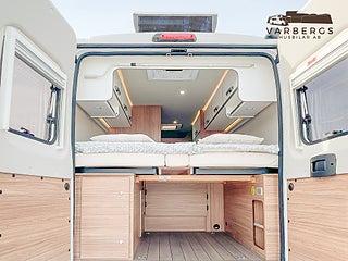 Med längd under 6 meter är bilen lätt att köra och parkera, samtidigt som den erbjuder hög komfort. Bak finns långbäddar med god sovkomfort som även kan bäddas ihop till en stor dubbelsäng. I sittgruppen finns möjlighet till gäst- eller barnsäng.