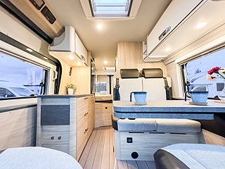 Coast Camper Edition är en specialutgåva där Weinsbergs beprövade planlösning möter Knaus exklusiva materialval. Ljusa träslag i ek-fanér, halvskinnstextilier och robusta möbelstommar ger en känsla av premium och lång livslängd.