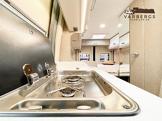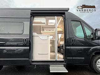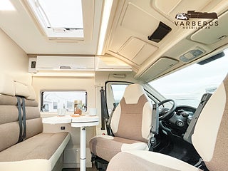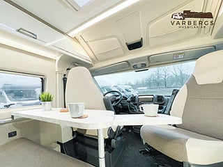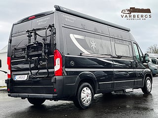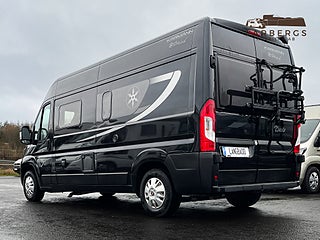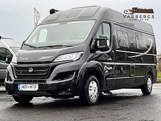 Med långbäddar, exklusiva ramfönster, Truma Dieselvärmare, uppvärmd/isolerad gråvattentank och svart metallic-lack placeras denna plåtis i ett exklusivt segment.
