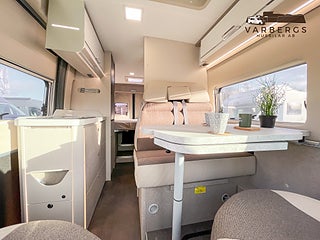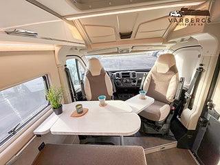Denna eftertraktade mobell kombinerar flexibilitet, premiumkänsla och smarta lösningar för året-runt-bruk. Fyra riktiga sovplatser (bakre långbäddar + popup-tak), isolerad och uppvärmd gråvattentank, dieselvärmare och dubbla garage gör detta till en komplett campervan för både längre resor och vintercamping. Med ramfönster i bodelen och Lifestyle-interiör får du dessutom en högre komfort- och kvalitetskänsla i vardagen.