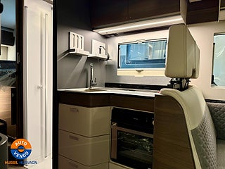 Modellår: 2025, Karosstyp: Halvintegrerad med taksäng, Värmesystem: ALDE - vattenburen centralvärme, Automatisk växellåda (9 vxl), Centrallås bil- och bodelsdörrar, ALDE - vattenburen centralvärme, Golvvärme - uppvärmt dubbelgolv, Klimatanläggning - bildel, Golvvärme - vattenburen i hytt, Krocksensor för gasol under färd, Stort kylskåp med separat frys, Taksäng ovanför sittgrupp - elektrisk, Fönster med mörkläggning/myggnät, Färskvattentank - frysskyddad, Spillvattentank - frysskyddad, Multimediaspelare med Backkamera och Navigation, Bluetooth-anslutning till högtalare, Lastutrymme - stort garage, Täthetsgaranti - från tillverkare, Extra bäddyna mellan långbäddar, Stänkskydd bak