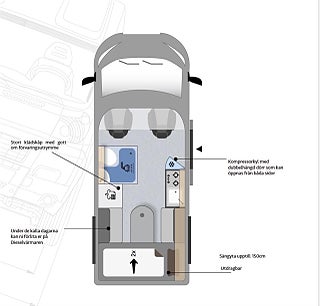 https://hyrbilsdepan.se/avdelningar/hyrbilsdepan-varberg/ för bokning, Officevan Duo 540. Mobilt kontor utrustat med 2st sovplatser, kontor samt toalett och dusch.
