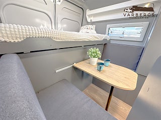 Smidig husbil med kontorsmöjligheter!. 12V-uttag, Husbil uthyres! Clever Duo Officevan 540. Totalvikt 3500kg.Får köras på B-Körkort. Minimiålder 25 år. Lägsta deposition 5, 000kr + beräknad hyreskostnad. Plats för 2st åkande och 2st sovplatser. Boka direkt på https://hyrbilsdepan.se/avdelningar/hyrbilsdepan-varberg/. Airbag förare, Hyr husbil för 2 personer!