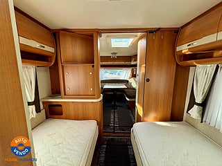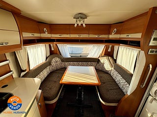 Kom in och kolla på denna fina husvagn med långbäddar och separat toalett och dusch. fram i vagnen har ni en härlig rund sittgrupp och även ett härligt kök. Utt i trafik 2012