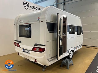 En liten smidig husvagn från tyska Hobby. Enkel att dra efter bilen
