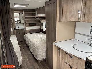 Fritidscenter - Trygghetspaket, Mycket välvårdad vagn med långbäddar och stor härlig toalett längst bak, varmt välkomna in och kolla närmare på denna fina husvagn som är lika bra att njuta av på vinter som sommar!