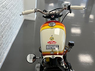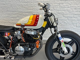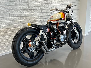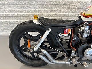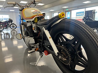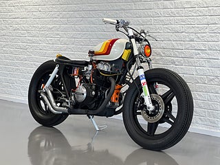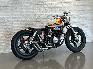 En sjukt cool Caféracer. Gör sig snygg precis vart som helst. har du en klädbutik, restaurang eller en bar? Här har vi inredningen! Hojen startar och går klockrent men behöver lite pill för att den skall gå igenom besiktning. Nyservad samt helt nya däck. Helsystem och nytt batteri. Byggherren till denna har bygg många hojar och den är tänkt just som en utställningshoj. Vill ni att vi gör den klar för besiktning tillkommer en kostnad på 10.000kr. For mer information ring oss på 035121313 eller maila info@nikamotors.se